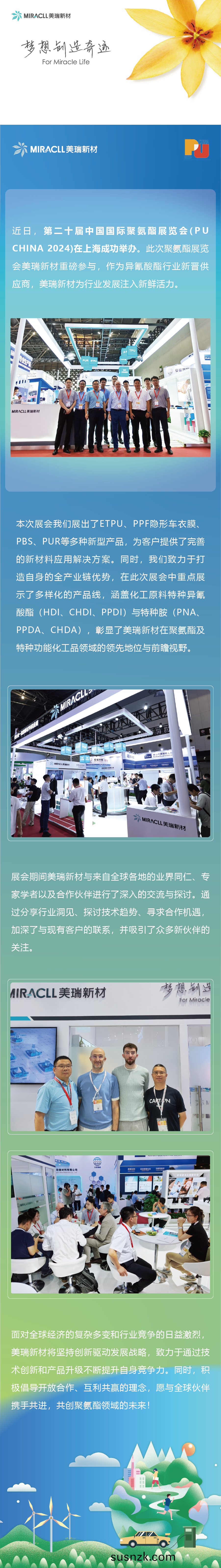 美(mei)瑞新材料股份有限公(gong)司(股(gu)票代码(ma):300848),是国内知名的聚氨酯新材料(TPU、PUR、PUD、PBS)及功能(neng)化工(gong)品原料(特(te)种异氰酸酯、特种胺)生产企(qi)业,产品广泛应用于消费电子、汽车制造(zao)、运动休闲、高端装备、绿色能源、家居生活、工业涂装、密(mi)封传动、3D打印、食品卫生等领域。