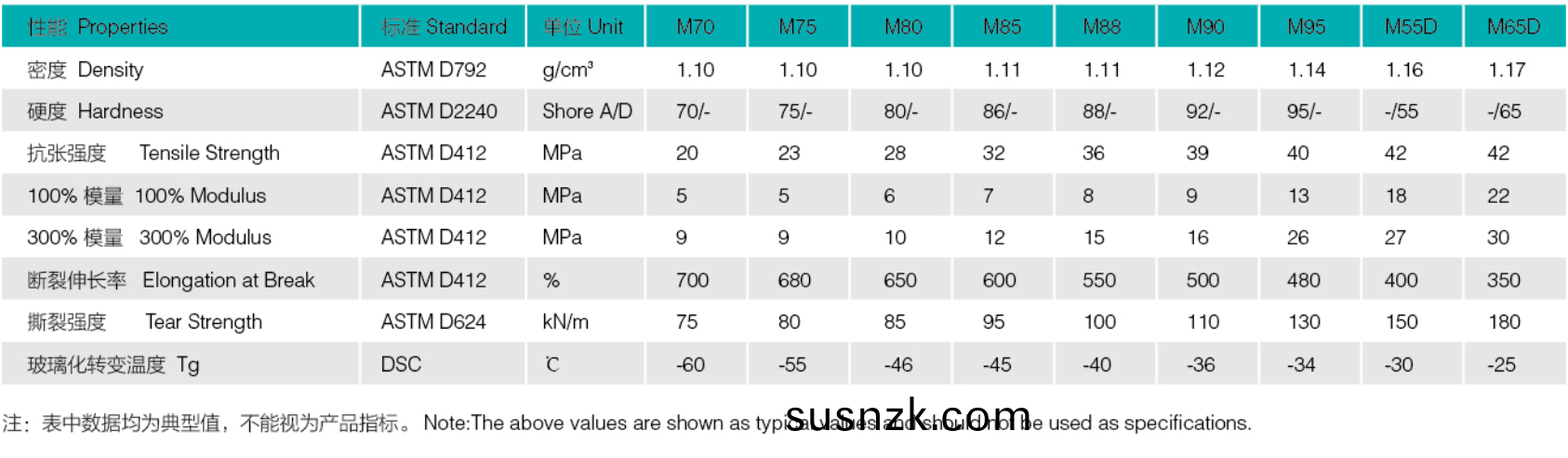 性能特性:优异的耐水解性(xing)、低温柔韧性、耐(nai)菌性、耐老化性(xing)和耐候性