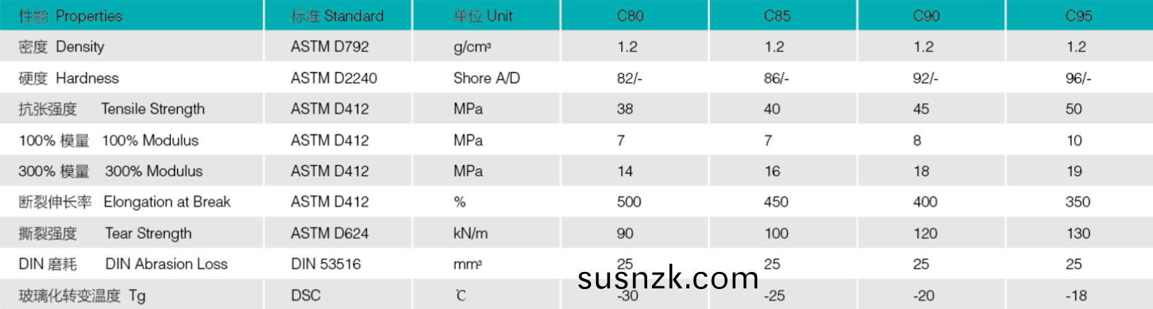 聚碳酸酯TPU 型号列表
